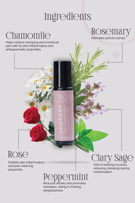 Rosemary oil's pain-relieving compounds, camphor and cineol, help alleviate period cramps. Rose oil contains citronellol and geraniol, which have anti-inflammatory and pain-relieving properties that help soothe period cramps. Peppermint oil's menthol content helps relieve pain and cools the body, reducing cramping. Chamomile oil has bisabolol and chamazulene, which have anti-inflammatory and antispasmodic properties that help reduce cramping and menstrual pain. Clary Sage oil's antispasmodic properties aid in relaxing muscles, leading to reduced cramping during menstruation.