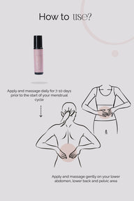 Apply and massage the menstrual cramps roll on daily for 7-10 days before the start of your menstrual cycle on your lower abdomen, lower back, or pelvic area.